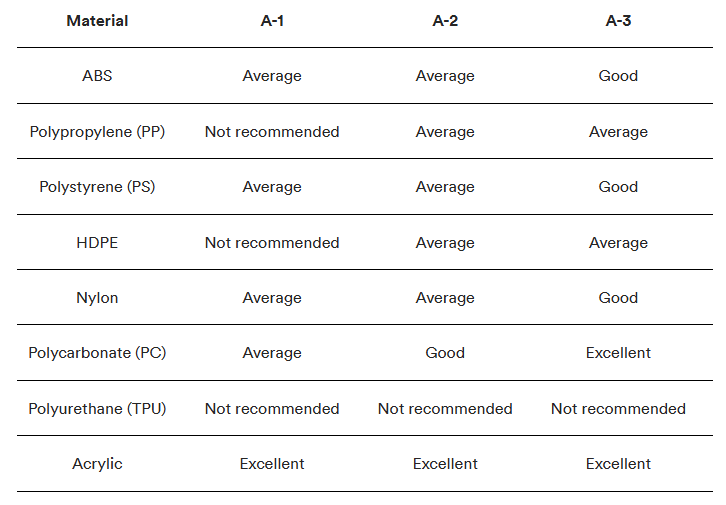 SPI-Oberflächen-/Formveredelungen führen zu unterschiedlichen Ergebnissen, je nachdem, welches Material Sie für Spritzgusskomponenten verwenden. In den folgenden Tabellen wird detailliert beschrieben, wie Sie die richtige Formoberfläche und die richtigen Materialien für Ihre spezifische Anwendung auswählen.