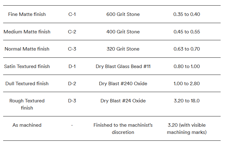 In dieser Tabelle finden Sie alle von uns angebotenen SPI-Spritzgussoberflächen.